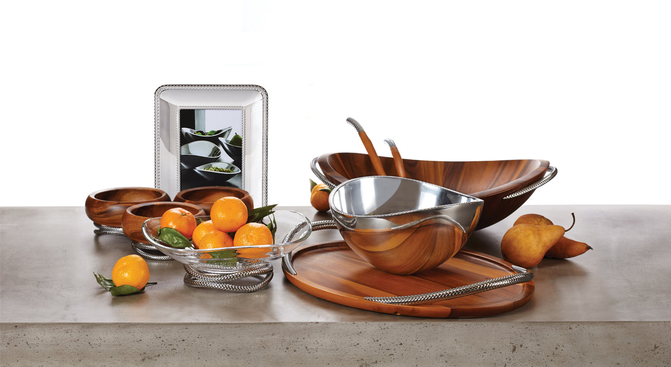 View full detailsThe package contains one Nambe Bella Triple Condiment Server. Made of Nambe Alloy. Measures: 11" L x 7.5" W x 3" D. Hand wash; dry immediately. ...