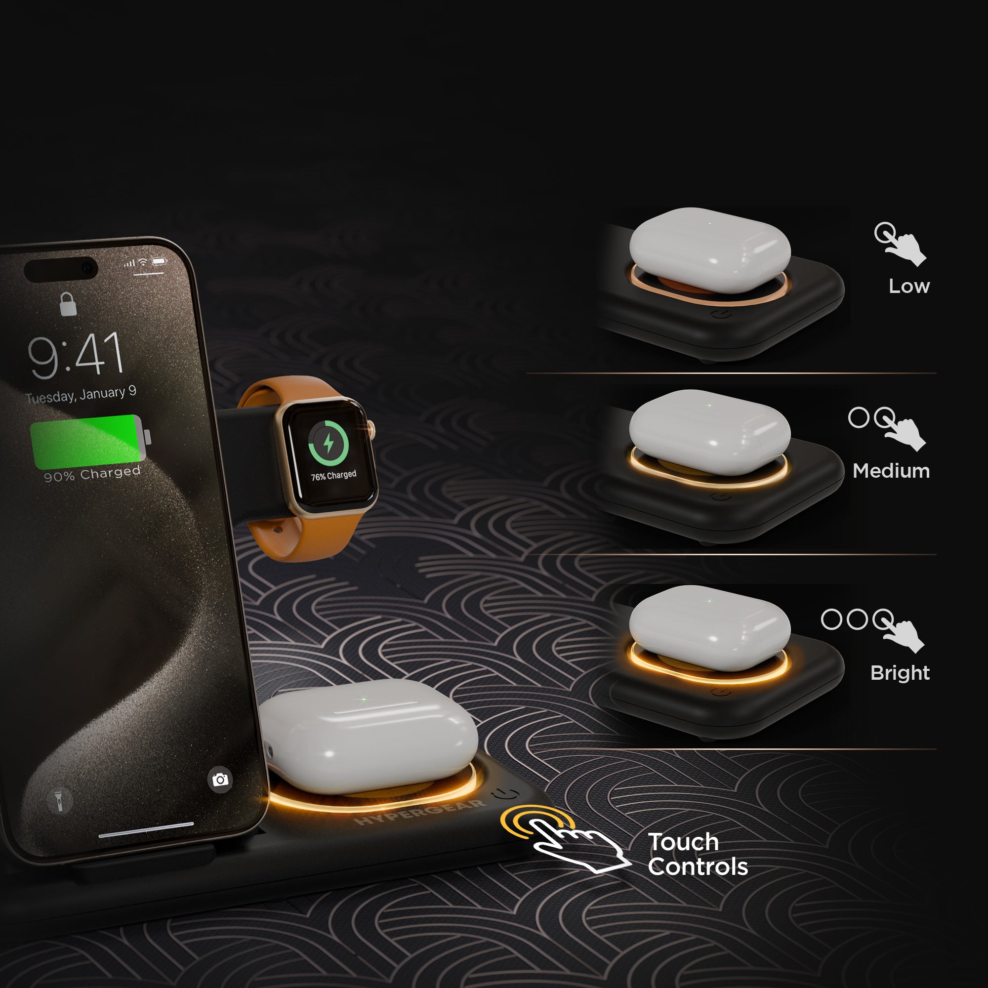HyperGear - Wireless Charging Stand 4 In 1 Powerfold X-Ray 15W Fast Charge Phone Airpods & Watch & 1 Usb-A Port - Black