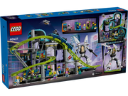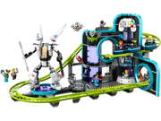 - A building toy packed with details for imaginative play – Features include a working 3-car roller-coaster train, a posable mech with a minifigure seat and toy arcade video gaming consoles