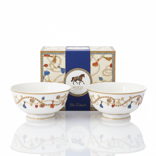 This curated set of two 11cm porcelain bowls from Pozzi Milano's CHEVAL collection offers versatility for intimate dining or coordinated tableware ...