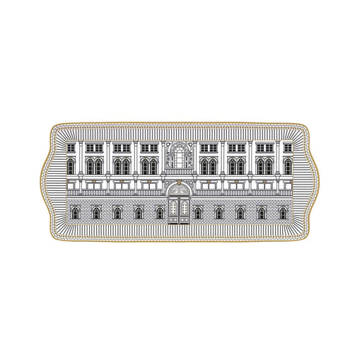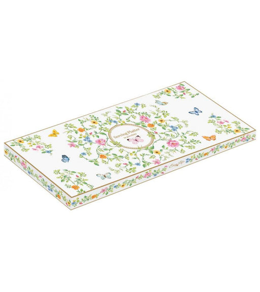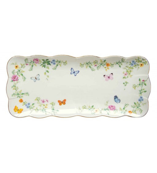 Rectangular tray in fine porcelain finished with a gold edge. DANCING BUTTERFLIES collection by Easy Life. Packaged in a color gift box. SIZE: 3...
