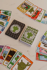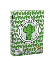 What's the Point? The cactus game of sharp moves and pointy strategies is a fast and family-friendly game where players collect sets of cacti to score points. Use action cards to outsmart your opponents - peek at their hand and steal with a See and Steal, or block their moves with a Stop card. Every turn is a chance to grow your points or sabotage someone else's. Easy to learn yet full of strategic twists, that plays between 10 to 20 minutes. It's a fun game you'll keep coming back to. Sharp, cheeky, and addictive - that's the point!