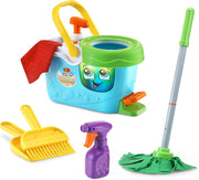 Toy of the Year 2022 finalist - Preschool category! Mop, hop, spin and sweep with the Clean Sweep Learning Caddy! Let kids clean up "messes" while they’re still excited to use a broom — your future self will thank you! Your today self (and your child) will love how the cute lil’ face on the bucket lights up and sings as kids pretend to clean. The interactive caddy brings learning into clean-up time with imagination. Uh, oh! Muddy paw prints on the floor. Grab the green mop to clean it! The soap pump makes funny squirting sounds as you pump out the imaginary soap. One, two, three. Now press the pedal to see the mop spinnity-spin! Show kids that cleaning actually can be all fun and games with boogie-down dance breaks. Follow fun directions like, "Hop while you mop! Now dance to the left and dance to the right!" Intended for ages 3+ years. Requires 2 AA batteries. Batteries included for demo purposes only. New batteries recommended for regular use. Unisex.