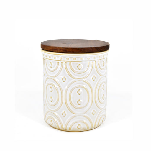 Textured Canister, with acacia lid, 900ml / 16.5cm H, stoneware. Ideal for storing and easily accessing your most used dry ingredients such as cof...