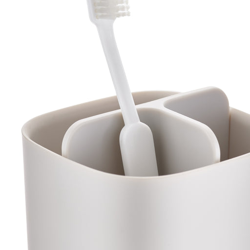 Toothbrush Caddy, 9 x 9 x 12.7 H cm, ecru. Suitable for powered toothbrushes and toothpaste tubes. Divider for organized storage. Ventilated for q...