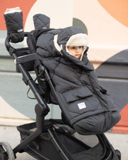 The sleek and contemporary Blanket 212 evolution? Benji keeps little ones toasty and chic from head to toe on mountain hikes, chilly city streets, and everywhere in between. The smart design allows you to size it up or down using zippered length and width extensions so it can actually grow with your child from 6 months to 4 years old! Other notable features include simple hook and loop attachments that fit any stroller, plus a removable anti-slip back panel that eliminates extra fabric between baby's back and the harness for car seat use. This both helps the harness stay put and gives you easy access to it anytime you need it.