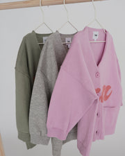 The classic unisex Boxy Cardigan that goes with everything! Crafted from 100% responsibly sourced BCI cotton, this elevated, v-neck, button cardigan will become little babe's favorite cover! Its modern boxy cut, intarsia 7AM detail and super soft breathable knit keeps kids cool and easily moving on all their explorations.