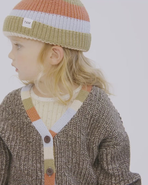 The Chunky Cardigan is the epitome of comfy-preppy. Crafted from a luxuriously soft, BCI cotton knit and finished with an elegant ribbed design, this cardigan features a relaxed loose silhouette and a multi-color button down front. This oversized dropped shoulder cardigan is made for layering and an easy addition to any outfit.