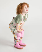 Get ready for an adventure with our Rain Suspender Pants! Perfect for exploring in slush, digging through the mud, scavenging for mushrooms, or even heading to school. Crafted from 100% recycled materials, these rain pants are eco-friendly and provide protection from wind and rain. The exterior shell is waterproof magic with an eco bionic and fluorine-free finish along with its welded seams to guarantee little ones stay dry on every outing. Plus, with adjustable straps and clip fasteners, they'll fit your little one just right.
