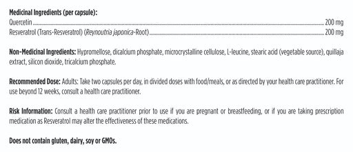Canadian customers only. Combines resveratrol and quercetin, two beneficial plant compounds, to support antioxidant status. Resvera...