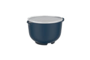 The mixing bowl with lid has a sleek design, a non-slip ring for stability and a handy pouring spout. Perfect for batters, dough or sauces. Made of durable material, dishwasher and microwave safe.