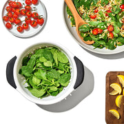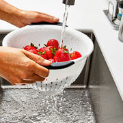 • Elevated design keeps colander away from the bottom of the sink to prevent pooling.