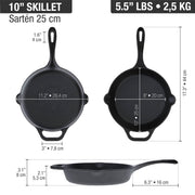 Give your cooking the upgrade it deserves with high-quality cast iron cookware. Victoria cast iron cookware is superior to traditional cookware because it offers better heat distribution and outlasts more conventional cooking pans. The Victoria Cast Iron Skillet is built from high quality iron and features an extra thick edge with invisible curvature for extra durability. It also has a deeper vessel than traditional pans to keep food securely inside. This pan includes a drip free spout on each side and comes pre seasoned with 100% non GMO, kosher certified flaxseed oil. Plus, it features a smoother textured skin for easier glide and release and a long curved handle for effortless carrying and cooking. With a few easy steps, it will stay in great shape and be ready to create delicious pancakes, eggs, fajitas, pizza, mac and cheese, steak, and so much more! Victoria’s versatile cast iron skillets are PTFE- and PFOA- free and are available in multiple sizes. Use one over an open fire, on the grill, or in the oven. You can even take it right from the oven to the table. Invest in pans, skillets, and products that will last a lifetime and deliver reliable natural cooking with every meal.