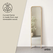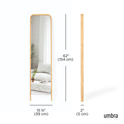 This eye-catching piece is sure to become a statement in any room. Bellwood Leaning Mirror features a soft curved wood frame made from renewable wood, offering both style and sustainability. The Bellwood Leaning Mirror is 62 x 15.5 2" (157 x 39 x 5 cm) in size – big enough to make an impact, yet small enough to fit in almost any room. Creating reflection and depth, this mirror will instantly bring extra light into almost any space. Includes anti-tip hardware. Part of Umbra's Bellwood Collection. Wood is a unique natural material with variations in tone, texture, and grain. The product may vary from our imagery. Care: Wipe with a clean damp cloth.