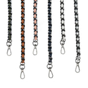 - Metal chain intertwined with Matte Luxe VL material for a sophisticated, dressy look