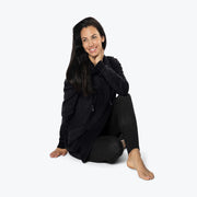 This stretch fleece tunic with a built-in eyeglass holder is perfect for lounging at home or running errands around town. Crafted from unbelievably soft stretch fleece, it blends practical details with everyday style — oversized pockets for hands or essentials, a secure eyeglass holder on the drawstrings so your readers or sunglasses are always close, and a convenient half-zip for easy on-and-off and temperature control.