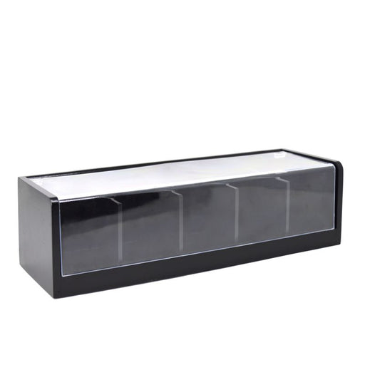 Tea Bag Organizer, 35.7 x 11 x 9.5cm (14 x 4.5 x 4.75'), black, natural bamboo. Five compartments to neatly store and display tea sachets, tea bag...