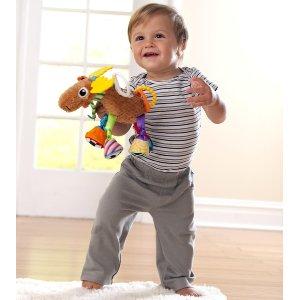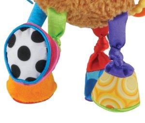 Mortimer the Moose has colorful, satin, knottie legs and multiple textures on his hooves with fun crinkles and jingles. His large, textured antlers are perfect for teething and his body is made of super soft material that baby will love to touch. Mortimer's squeaker tummy and clacking tail rings add extra fun and exploration for baby that stimulate the senses.The Lamaze clip lets you hook Mortimer to strollers, carriers and diaper bags to take him along for on-the-go fun.