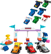 - Creative fun for family playtimes – Share your passion for F1® with your preschooler with this toddler toy that includes 10 buildable race cars, 3 driver bricks, a crane toy, start lights and a podium