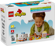 Caring toddlers pretend play exciting rescue scenes with the Ambulance & Driver (10447) toy for preschool kids. This toddler toy also includes a drivable ambulance toy and 2 LEGO® DUPLO® figures, a paramedic and girl, for creative imaginary play.