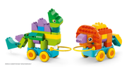 Bring big fun to the playtimes of little builders with the 3in1 Dinosaurs on Wheels (10451) toddler toy. Packed with creative play possibilities, this learn-through-play dinosaur toy comes with a range of colorful bricks to create 3 pairs of creative models.