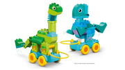 The 108 bricks and pieces in this LEGO® DUPLO® animal toy set assemble in 3 different ways: as Diplodocus and T. rex toys, Triceratops and Stegosaurus toys or Pteranodon and Parasaurolophus toys. Toddlers can add fun to their dinosaur figures by giving them a moving neck, articulated tail, flapping wings or mouths that open and close. Preschool kids build their dinos on a wheelbase, making this a great gift for toddlers who love LEGO DUPLO vehicle playsets.