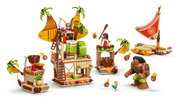 - Moana boat building set – Includes a barge boat with 3sections and a zipline, a smaller, 2-hulled canoe with storage space, Heihei the chicken, Moana, Maui, Kotu and 5 more LEGO® ǀ Disney characters