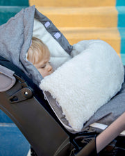 The LambPOD is the ideal cold-weather footmuff. It’s cozy, insulated, heavyweight, and zips on and off, with openings that work with the standard 5-point safety harness on any stroller or car seat. Even on the most freezing days, your little one will be protected, warm, and comfortable on strolls. The ultra-soft plush cover detaches to double as a standalone blanket on warmer days. And yep, it’s totally vegan—no animal products here!