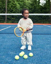 The Boxy Chunky Sweater is an oversized tennis-inspired knit, perfect for layering through every season. This crewneck features contrasting trims for a sporty finish, and a sweet front pocket. Made from ultra-soft, 100% BCI cotton in a chunky ribbed knit, it’s perfect for crisp mornings, outdoor play or weekend lounging.