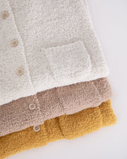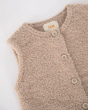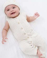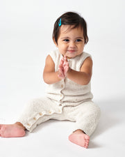 If you’re looking for ultra-comfy baby loungewear that blends fuzzy warmth, easy layering, and long-lasting quality, this sleeveless romper is the perfect everyday piece.
