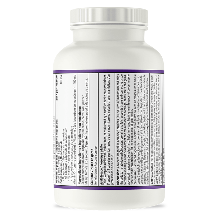 Magnesium is required for over 300 different biochemical reactions in the body. Advanced Magnesium Complex® is a highly bioavailable formula that combines four sources of magnesium into one comprehensive supplement to ensure the body’s magnesium needs are met. This formula includes Magnesium Aspartate, Magnesium Ascorbate, Magnesium Malate and Magnesium Glycinate. They are most easily metabolized by various systems in the body, and each form provides more benefits than just magnesium alone.