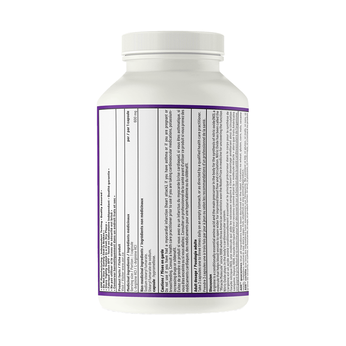 Arginine is an amino acid with many important health benefits, but is best known for its key role in the production of nitric oxide, a potent factor in relaxing blood vessels and promoting blood flow. By increasing nitric oxide levels, Arginine has the ability to prevent plaque and blood clot formation and reduce the stickiness of platelets. Clinical studies have found high doses of arginine beneficial for many cardiovascular conditions including high blood pressure, peripheral vascular disease and angina.