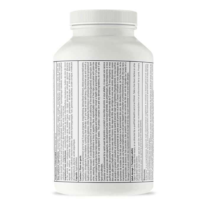 A well-designed multivitamin is fundamental to any supplement regimen. Unfortunately, factors such as market trends, the unfortunate tendency toward “one-capsule-a-day” formulas, products that provide equal quantities of different nutrients (that the body requires in different amounts), inappropriate doses and attempts to achieve the longest list of ingredients possible result in multivitamins that may not end up benefiting the consumer’s health. The problem is that to achieve these results, quality is often sacrificed, using ingredients with poor bioavailability or lower quality forms of nutrients, or doses that are inadequate, excessive or imbalanced. Ortho Core® is designed to correct all these common formulation problems while providing some of the most biologically active antioxidants and powerful phytonutrients available.