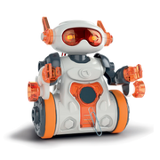 Build your own unique and original robot with plenty of fun play modes! With two infrared sensors, the new Mio Robot can avoid obstacles and follow your hand like a real bloodhound. You can use the microphone to command it by simply clapping your hands, while the push-button panel on the robot's back can be used to programme its route. The free app has two play sections: coding, to learn the principles of block-based programming, and real time, to control movements, sounds and light effects. Lastly, with the marker holder and magnet holder respectively you can make the robot draw or programme it to search for small coins and paper clips. Conceived, designed and developed in Italy.