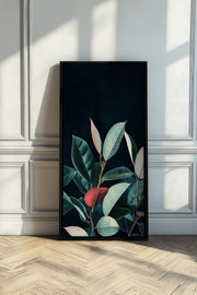 Sur fond foncé, ce feuillage détaillé semble flotter dans la nuit. Les teintes froides contrastées par un rouge subtil créent un équilibre à la fois mystérieux et élégant. Idéal pour apporter profondeur et raffinement à votre décor.