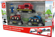 Hape’s Six Piece Race Car Transporter comes with 6 pieces including an engine with a removable driver, two race cars, and two transporter carriages. The Race Car Transporter can expand to multiple play opportunities – combine with other Hape wooden rail sets. Each transporter carriage has a loading ramp that folds down and the engine roof slides back so driver can be placed inside and removed. Drive Competition and Develop Transport Systems Knowledge This Six Piece Race Car Toy is great for competing and racing against each other, especially when attached to one of Hape's wooden rail tracks. It’s race day and time to get your cars to the track! Put down the loading ramp so the cars can drive onto the transporter, then put the train together. The engine roof slides open so the driver can get in. Good luck on the track! The Race Car Transporter develops hand-eye coordination, promotes dexterity and teaches the kids about different transport modes. What's greater than having a bit of fun whilst learning a few life skills? Suitable for ages 3 and above. Hape Toys is one of the world’s largest producers of wooden toys. Hape is guided by the philosophy that the future belongs to our children and creates toys that inspire play, learning and exploration of the world we live in. All of the products meet, and more often, exceed the strictest international standards for quality and safety. Hape Toys represents the next generation of play.