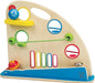 • Colorful wooden balls, peek-a-boo holes and fast tracks create a dual-sided mountain of fun