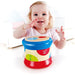 Hape Baby Drum is the perfect toy for developing your little one's love for musical beats. Watch as they experience the wonder of musical sounds and the joy of rhythm from a very early age. Encourage your child to crawl and roll the Baby Drum to hear the sweet music and see its colorful lights flash or stand the drum up and tap the colored circles to make funky beats and music! When put down and rolled, the Baby Drum emits a funky drum melody and begins a dazzling light show automatically. The melody differs when it is put down and will stop automatically when still. When stood, the Baby Drum can be beaten like a drum, with each colored circle emitting a different drum sound and triggering a different colored light when tapped. Encourages Children to Explore Music Rhythm The drum has been designed to encourage movement from your child in order for it to produce a sound. This will greatly improve your child’s understanding of the cause and effect relationships that exist. Enhances Motor Skills As your toddler learns his/her way around the baby drums he/she will start improving their motor skills, dexterity and their self-confidence. Hape Baby Drum Finishes Materials The drum set is suitable for children aged six months and older. The product is durable and child safe, it contains water-based paint and has non-toxic finishes. Battery Operated The baby drums are battery operated (Requires three AA batteries, not included), it has an automatic power saving mode which turns on after two minutes of inactivity.