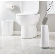 • Toilet Brush, with slimline storage stand, 4.5 x 7 x 17"H / 11.5 x 17.5 x 43cm H, grey.