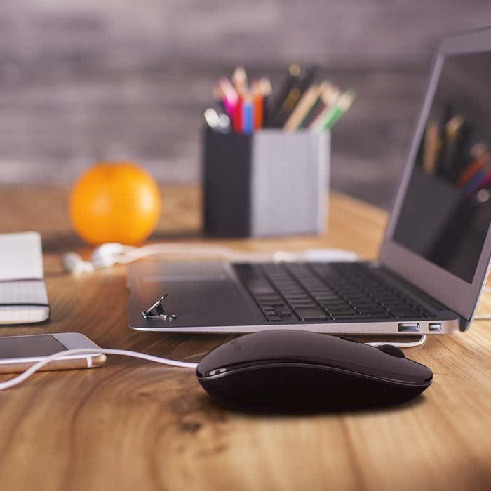 The Arrow BT slim mouse delivers a smooth tracking experience with true wireless freedom thanks to its Bluetooth® v5.1-compatible connection. Ideal for business trips, libraries, and coffee shops, fit for wherever you want to work or study. This ergonomic and mobile mouse fits comfortably in your hand, featuring a redefined ambidextrous design. Forget the hassle of replacing batteries with up to 12 months of battery life1 thanks to the low energy consumption and a convenient on/off switch. Its sculpted design makes it a splendid accessory to complement any laptop or desktop.