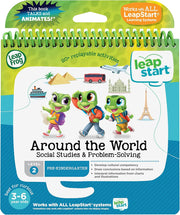 Join Leap, Tad and Lily as they travel to places like Egypt, France, India and Australia in the Around the World book for LeapStart systems. Play problem-solving games with the frogs and learn about logic, reasoning and social studies concepts. Tap the pictures and words on every page with the LeapStart stylus to magically bring the activity book to life. Enhance the learning with amazing animations when you play on a LeapStart system with a screen. Visit different countries and explore exciting landmarks while learning about the culture of those countries. Play a memory game to find photographs, decipher messages that use pictures to represent words and discover musical instruments from around the world. Many activities are designed with two levels so kids can play and learn at the right level and move up when they’re ready. This book is compatible with all LeapStart interactive learning systems. A computer with internet is required to download books onto the LeapStart system. Intended for ages 3-6 years. Batteries not required.