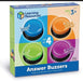 Response buzzers let students easily buzz when they have an answer; To clean, wipe the surface of the unit with a dry cloth. Actively engage students with "game-show" style buzzersA perfect tool for quieter students - buzzers are loud enough to get the attention of the classFour distinctly different, attention-getting sounds enable teachers to clearly identify who buzzed in firstIdeal for ages 3+Learning Style: Auditory