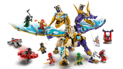 - Interactive NINJAGO® dragon – Kids can activate a shooter in the dragon’s chest and move its large foil wings back and forth using a lever on its back