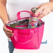 Make mealtime on the go effortless with this insulated lunch tote designed to keep your food and drinks at the perfect temperature for hours. The one-piece main zipper compartment opens wide for easy packing, while the fully insulated interior and mesh slip pouch help organize snacks, utensils, or an ice pack. A convenient front slip pocket keeps essentials like your phone or wallet within quick reach.