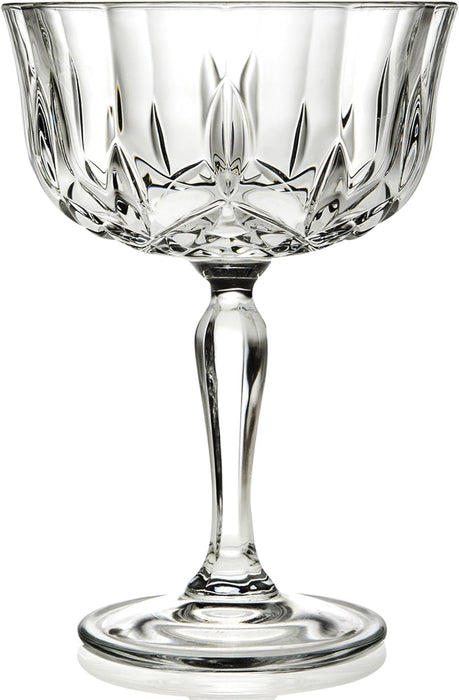Modern mixologists have reimagined the classic champagne coupe as a vessel to present visually stunning and refined cocktails. The Opera coupe features a decorated bowl design, bringing attention to the cocktail within.