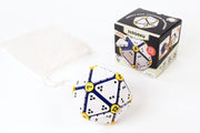 Place the number tiles in random slots, then match the number of dots on all five intersecting triangles to each tile. All done, right? Not so fast. Now you can build your next challenge — simply swap a few number tiles and the game continues! Remember: a solution is always just around the next twist. With the perfect geometry of an icosahedron, Icosoku can be solved every single try!