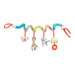 Can be attached anywhere! It can be pulled and stretched, wrapped around a pushchair bar or attached to the side of a cot. Two Velcro® fastenings to attach it anywhere. Made entirely in textile for extra safety and softness, with bright Colors and varied designs, a range of different textures and fabrics to stimulate baby's sense of touch: a squeaker hidden inside Lazare the Cat, a scrunching paper sound in Kiwi the Bird's wings, a soft textured ring to chew at Margot the Turtle's feet, and a jingling Sophie la Girafe. Length adjustable from 20 to 80 cm.