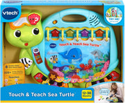 Dive into early reading with your toddler in the touch and teach sea turtle interactive story book. A holographic cover, bright colors and light-up buttons draw and hold your little one's attention on eight double-sided book pages. Sea creatures fill this deep-sea story with learning experiences focused on letters, numbers, colors and animals with three learning modes. Press the piano key buttons on each page to hear the names of a variety of sea animals, listen to their sounds and practice counting. Go exploring with four light-up starfish and quiz questions that get little ones thinking and looking. Enjoy a robust 225+ songs, melodies, sounds and phrases in this take-along toddler book with carrying handle. Intended for ages 12-36 months. Requires 2 aa batteries. Batteries included for demo purposes only. New batteries recommended for regular use.
